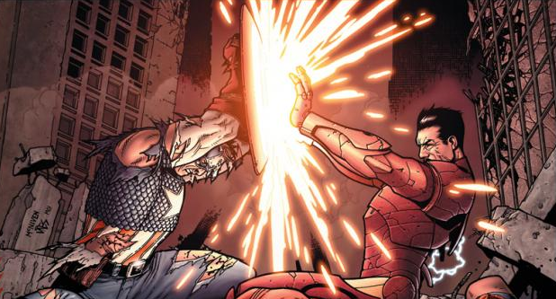 Most of you are likely aware of Marvel’s Civil War, even if you don’t know the details. I’ve given a short explanation before, but it bears repeating (and fair warning; if you really want to go into the next Marvel movie without any prior knowledge you should probably stop reading right now). As portrayed in the comics, Civil War starts when a group of supervillains causes a massive explosion on live TV, killing the New Warriors (who had been broadcasting a reality show about superheroes), and 600 other civilians (which had included 60 children). Public outcry was immediate, and the approval rating for superheroes plummeted. As such, the government was able to push forward the Superhero Registration Act, a piece of legislation calling for all superpowered beings to unmask themselves and register with the organization, ensuring they would be made responsible for any collateral damage and future damages. Tony Stark, originally opposed to the legislation, later became its biggest proponent after the incident with the New Warriors. Steve Rogers, that is Captain America, was immediately opposed, feeling that this Act took away liberty and the right to privacy from superheroes and, thus, violated their basic rights.